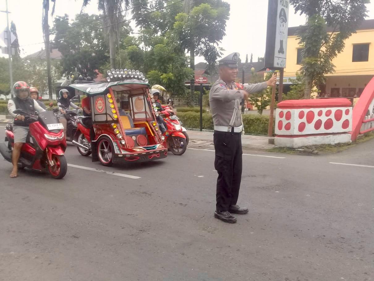 Personel Satlantas diterjunkan langsung untuk melakukan pengaturan arus lalu lintas, membantu kelancaran mobilitas masyarakat, serta memberikan edukasi kepada pengendara terkait pentingnya mematuhi aturan berlalu lintas.
