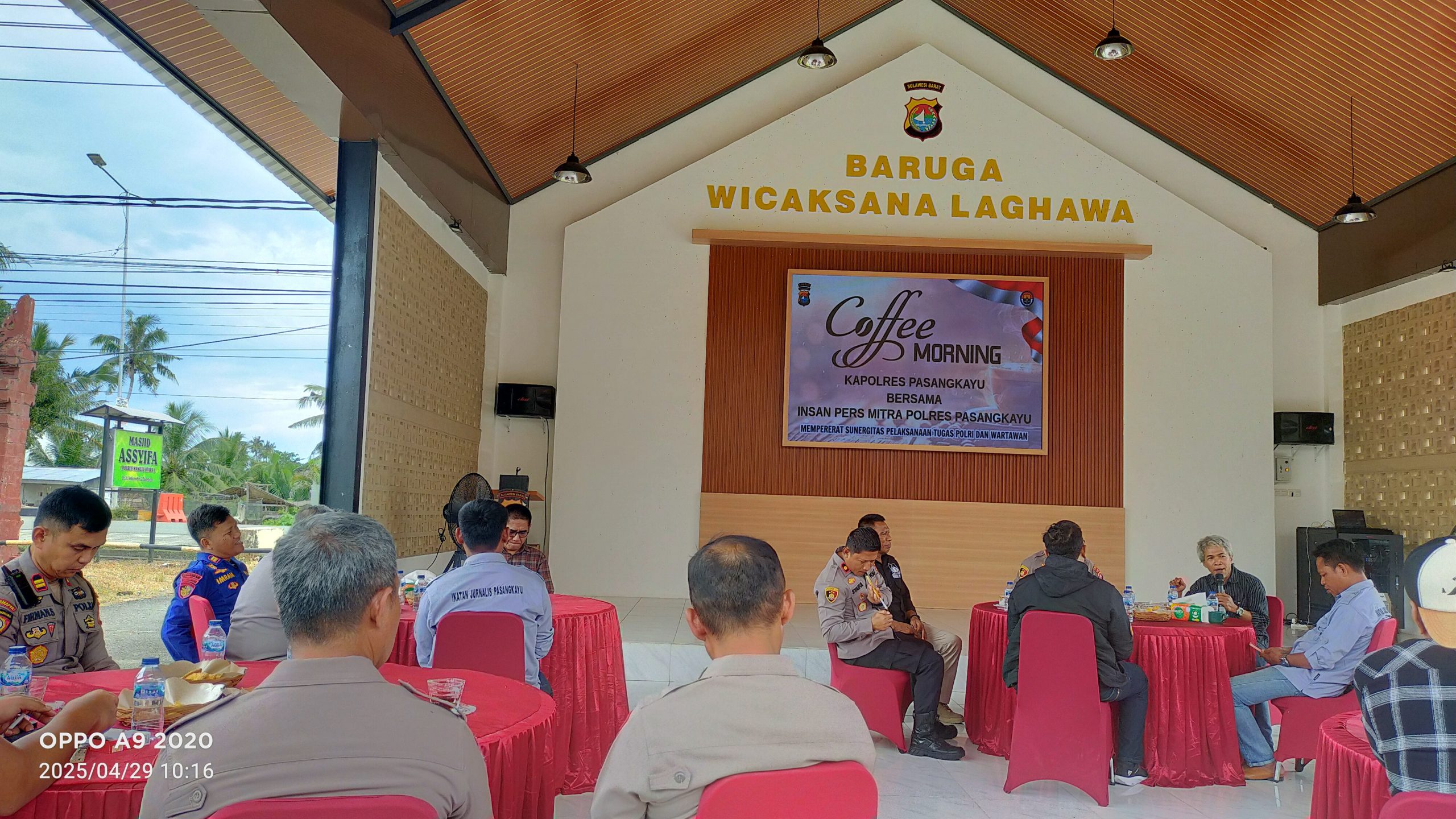 Coffee Morning dilaksanakan bersama insan pers sebagai mitra Polres Pasangkayu,dihadiri puluhan wartawan media online dan cetak,dari latar belakang organisasi wartawan,seperti IJP,IWO,PWI dan lainnya.Turut pula hadir Anggota DPRD Kabupaten Pasangkayu Arham Bustaman Fraksi Partai Nasdem komisi I.pada Selasa pagi 29 April 2025.