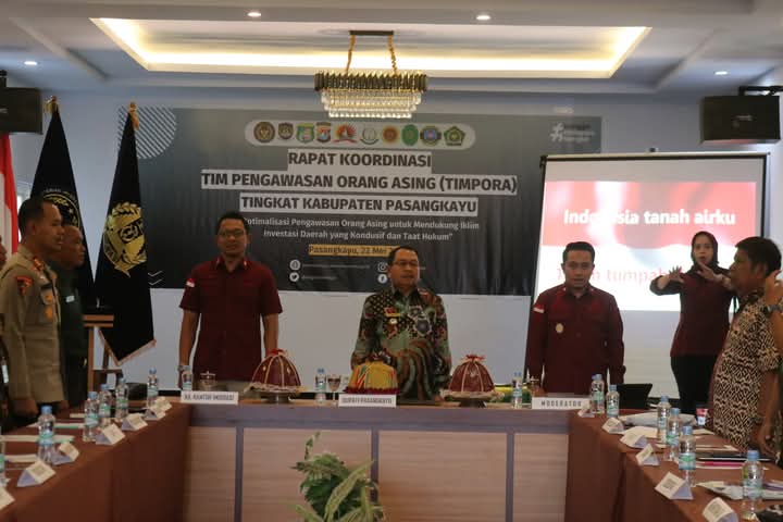 Rapat Koordinasi Tim Pengawasan Orang Asing (TIMPORA) Tingkat Kabupaten Pasangkayu Tahun 2025 ini bertemakan “Optimalisasi Pengawasan Orang Asing Untuk Mendukung Iklim Investasi Daerah Yang Kondusif dan Taat Hukum”.