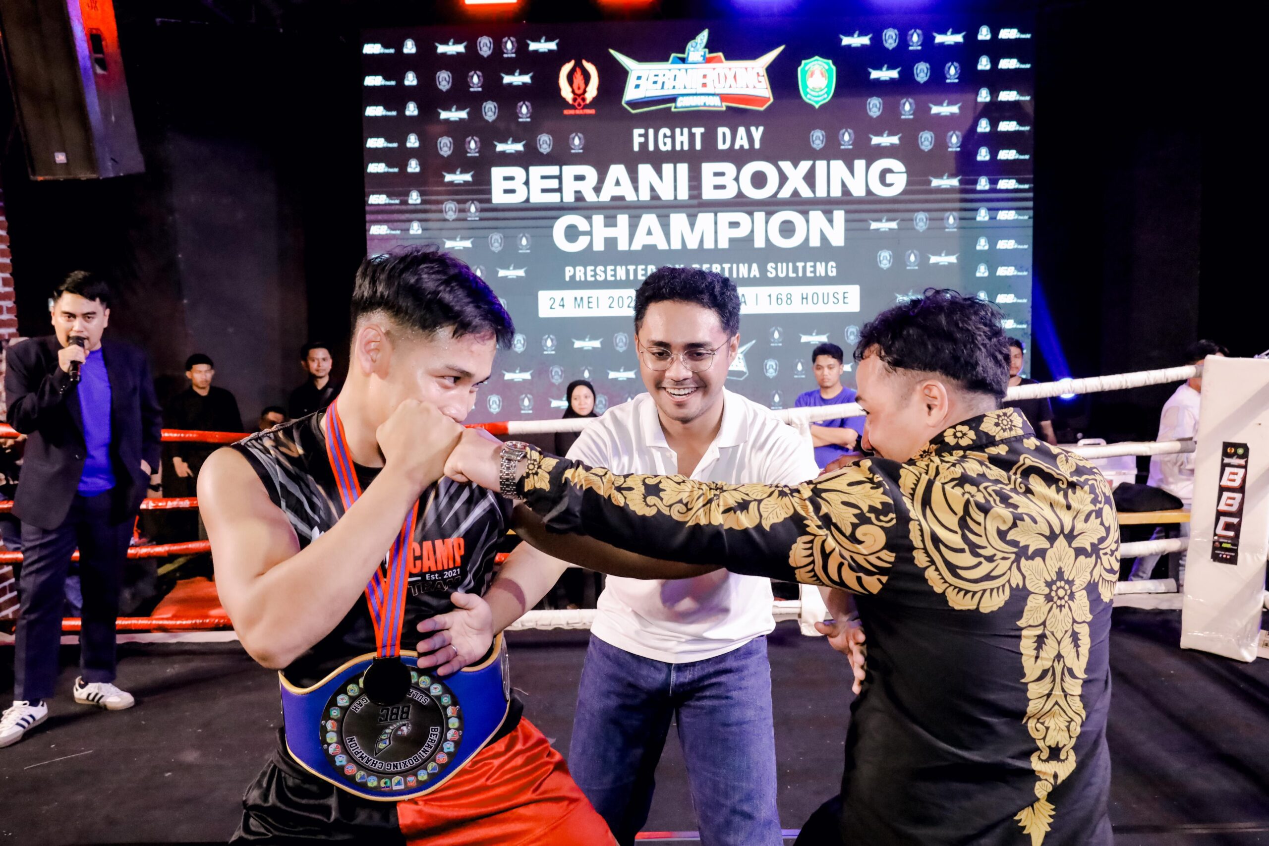 PasangkayuNews.com, Palu (Sulteng) — Gelaran Berani Boxing Champion (BBC) 2025 yang berlangsung di 168 House, Palu, Sabtu (25/5/2025), ditutup dengan penyerahan medali dan sabuk kemenangan langsung oleh Ketua Pengprov Pertina Sulawesi Tengah, Fathur Razaq Anwar.