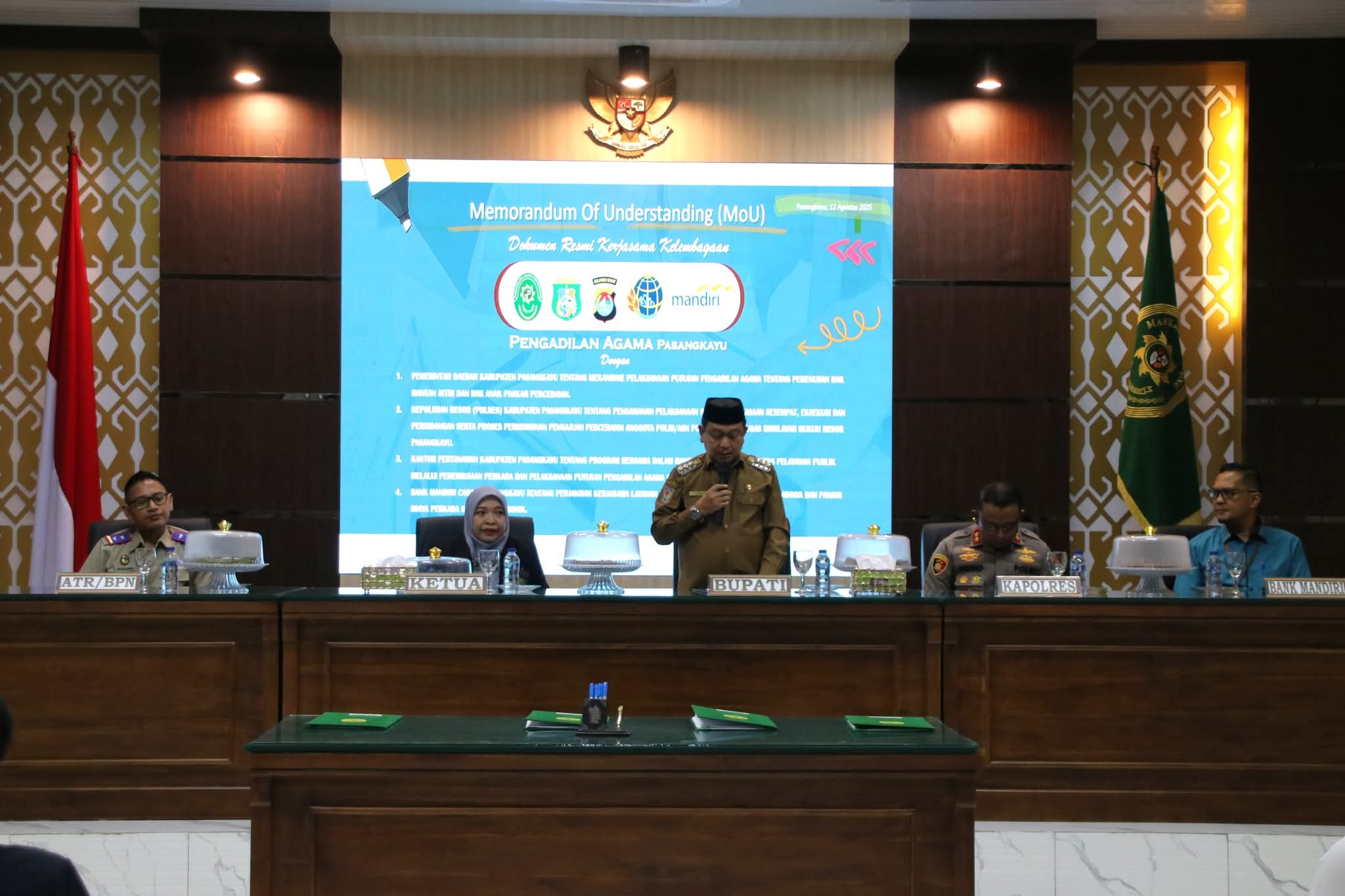 PASANGKAYUNEWS.com — Bupati Pasangkayu H. Yaumil Ambo Djiwa, S.H , menghadiri acara Penandatanganan Memorandum of Understanding (M.o.U) dukumen resmi kerjasama kelembagaan Pengadilan Agama Pasangkayu dengan Pemerintah Kabupaten Pasangkayu dalam hal ini Instansi Vertikal dan Non Vertikal, Bertempat di Kantor Pengadilan Agama Kabupaten Pasangkayu,pada Selasa (12/08/2025).