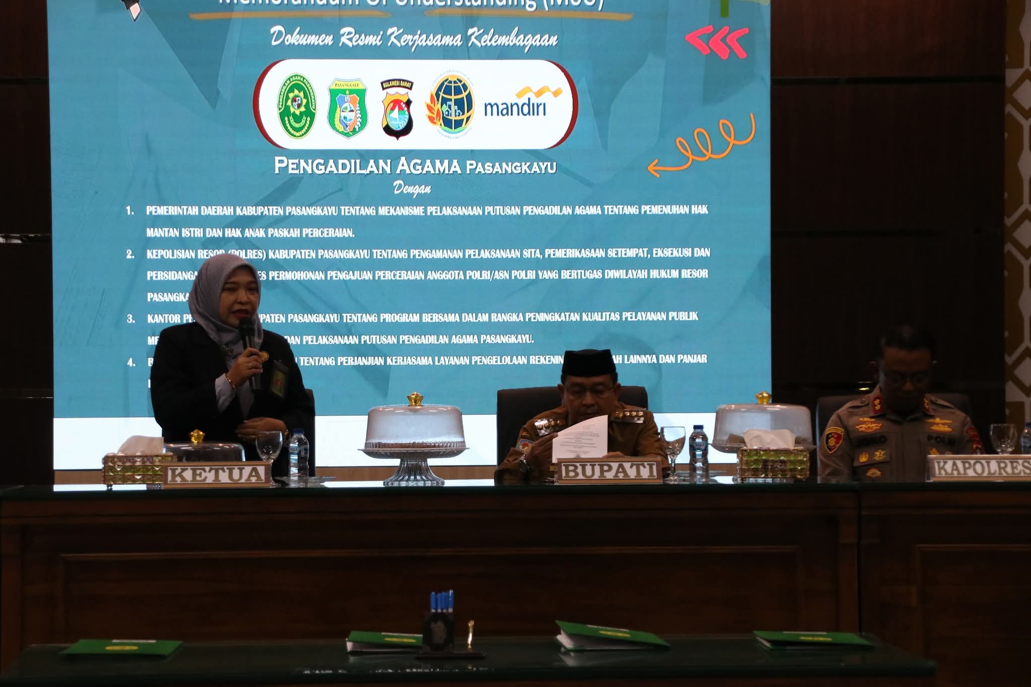 Sementara itu, Bupati H.Yaumil dalam sambutannya menyampaikan apresiasi atas terlaksananya MOU ini, sekaligus mengapresiasi kinerja Pengadilan Agama Pasangkayu yang telah berperan aktif dalam memberikan perlindungan hukum.