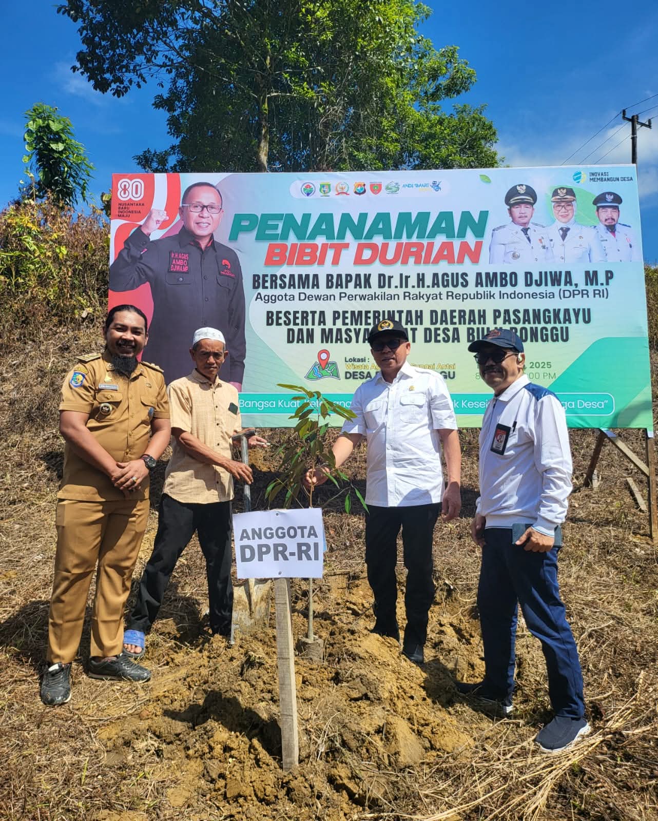 PASANGKAYUNEWS.com — Wakil Bupati Pasangkayu, Dr. Hj. Herny Agus,S.sos, M,Si , hadiri kegiatan penanaman 1.100 bibit durian Musang King di Dusun To’Bajo Desa Bulubonggu, Kecamatan Dapurang. pada Senin (11/08/2025).