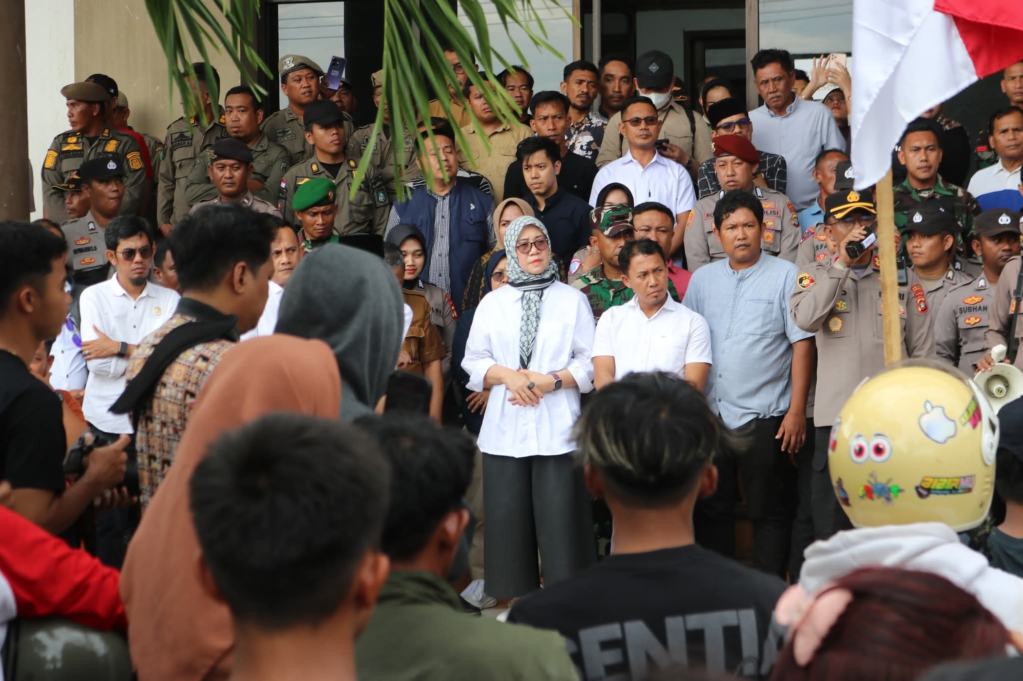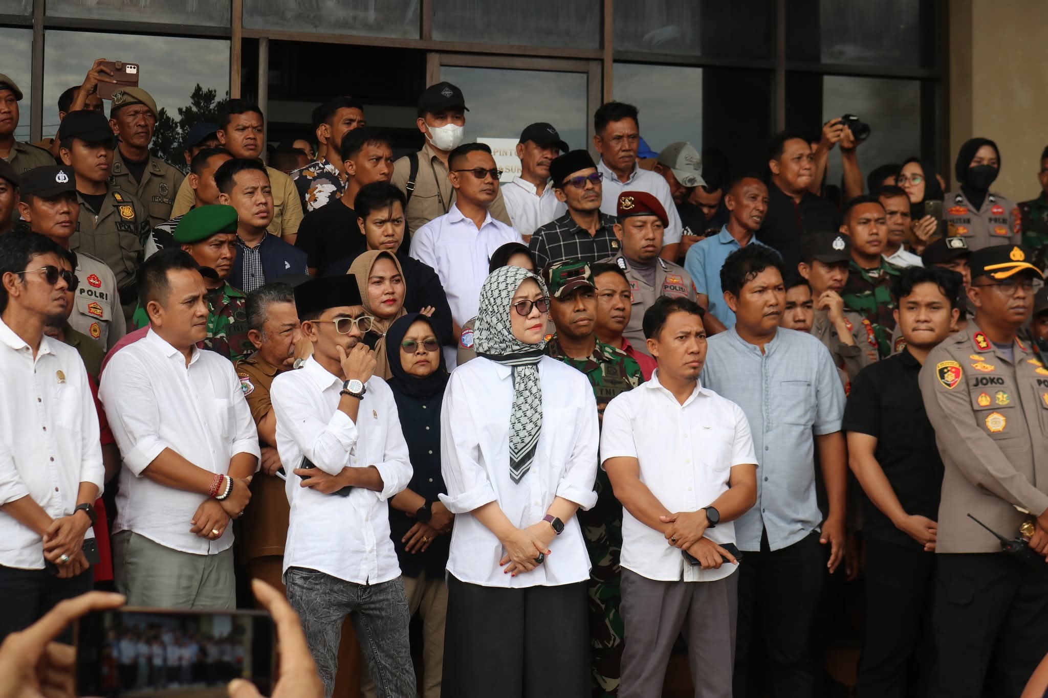 PASANGKAYUNEWS.COM , Kota Pasangkayu — Wakil Bupati Pasangkayu Dr. Hj. Dr. Hj . Herny Agus,S.sos., M.Si di dampingi Ketua DPRD Kabupaten Pasangkayu Irfandi Yaumil RM ADJ, Kapolres Pasangkayu, Dandim Pasangkayu serta para anggota DPRD Kabupaten Pasangkayu menyambut aksi unjuk rasa oleh Aliansi Solidaritas Pemuda, Mahasiswa, dan Masyarakat Pasangkayu di Depan Gedung DPRD Kabupaten Pasangkayu, Provinsi Sulawesi Barat, pada Senin (01/09/2025).