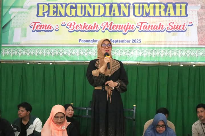 PASANGKAYUNEWS.COM,Kota Pasangkayu — Wakil Bupati Pasangkayu sekaligus Ketua Badan Kontak Majelis Taklim (BKMT) Kabupaten Pasangkayu, Dr.Hj.Herny Agus,S.Sos.,M.Si., secara resmi membuka acara pengundian umroh gratis dengan tema “Berkah Menuju Tanah Suci” di Masjid Madaniah Pasangkayu, Provinsi Sulawesi Barat, pada Senin (08/09/2025).