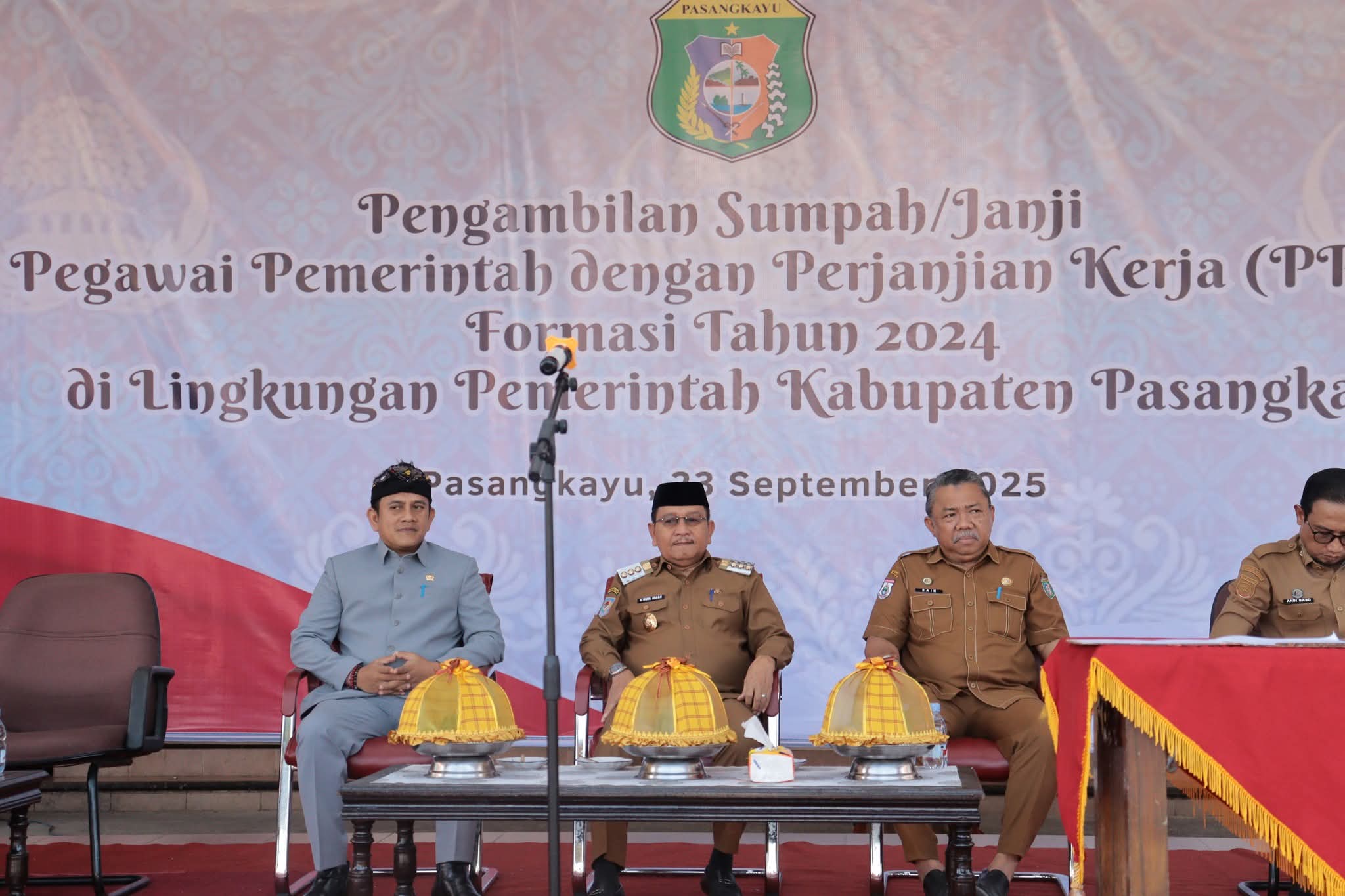 PASANGKAYUNEWS.COM, Kota Pasangkayu — Sebanyak 412 orang Pegawai Pemerintah dengan Perjanjian Kerja (PPPK) formasi tahun 2024, Resmi diambil sumpah/janji oleh Bupati Pasangkayu, H. Yaumil Ambo Djiwa,S.H , berlangsung di Pelataran Kantor Bupati Pasangkayu. Selasa (23/09/2025).